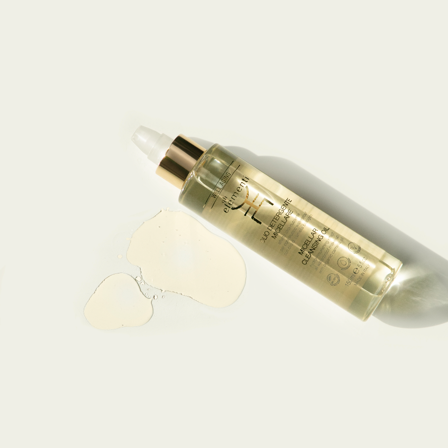 RECOMMENDED WITH: On its own or with rinse-off cleansing products from “gli elementi” line (GEOTHERMAL CLEANSING LOTION, DERMO-PURIFYING CLEANSING GEL, BRIGHTENING FOAM) for daily double-cleansing. In combination with the complementary Well aging products of “gli elementi” line (REPLENISHING DAY INFUSION-CREAM, REPLENISHING NIGHT INFUSION-CREAM, NECK&DÉCOLLETÉ LIFT INFUSION-CREAM) it constitutes an optimal treatment with a high synergy of actives. For maximum performance of all pro-age treatments, periodic micro-exfoliation with GENTLE ENZYME PEEL, to be performed every week or 10 days depending on skin type and/or age, is strongly recommended, to make the skin surface optimally receptive to subsequent applications, maximizing the results.